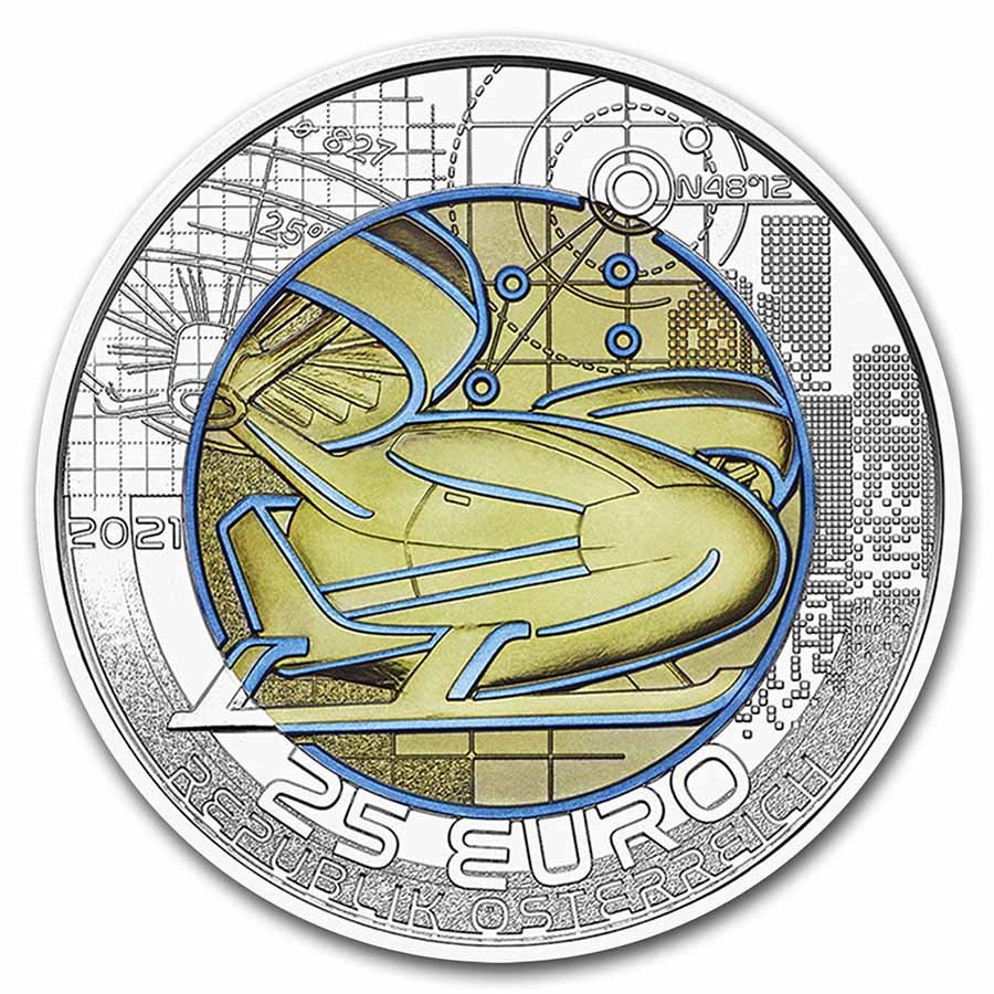 The Austrian Mint’s 25 Euro, “Smart Mobility” niobium center coin won the Best Bi-Metal Coin in the Coin of the Year Awards (COTY) for coins dated 2021. The winning coin is part of the Mint’s famed Silver Niobium series, which features a two-tone niobium core and silver outer ring.