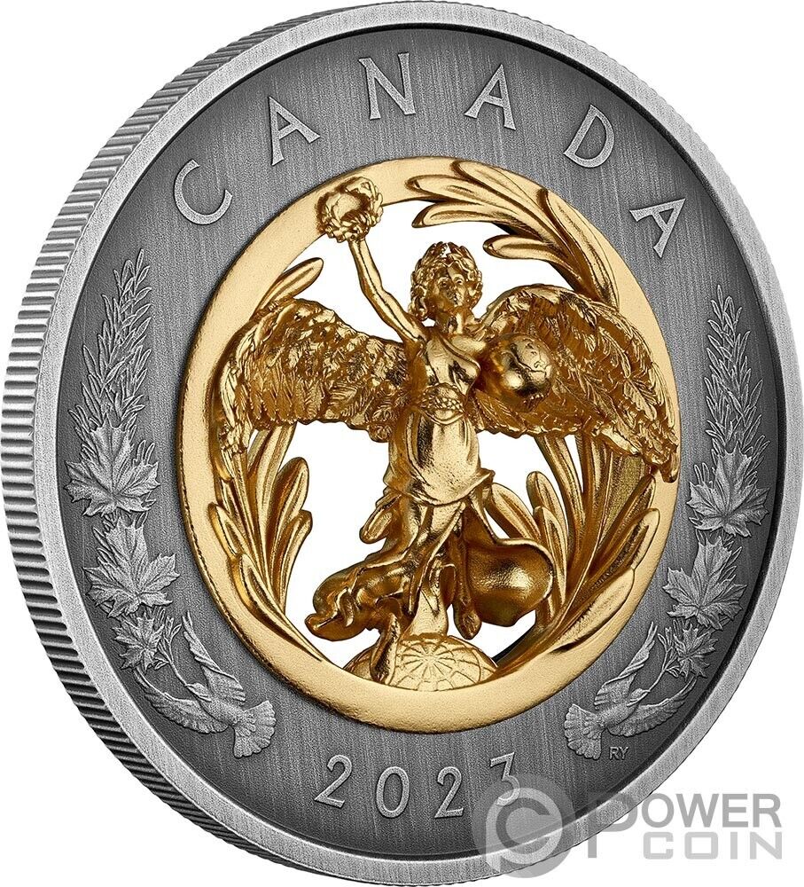The Royal Canadian Mint won the Most Inspirational Coin category in the Coin of the Year (COTY) Awards for 2023-dated coin. Its Allegory of Peace coin is a double-sided tribute to peace. “No matter which side of the coin you view, Peace lies at the heart of this Canadian ode to those who promote peace in our world, which is protectively cradled by the winged figure that expresses hope for the future,” the mint writes.
