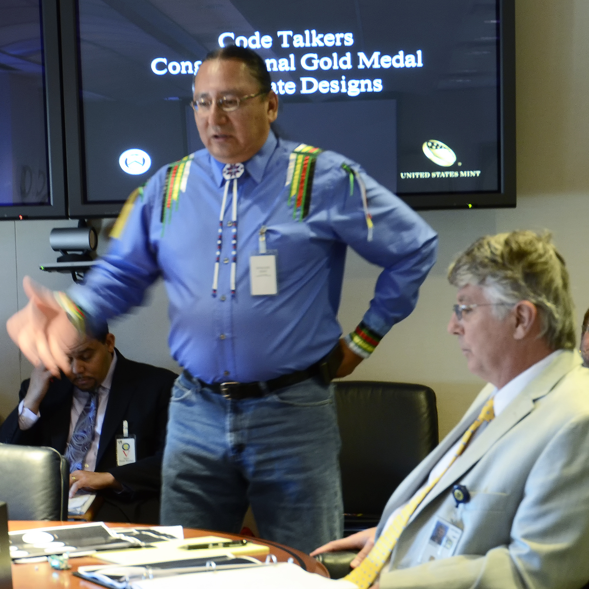 Lyle Cook, liaison to the Choctaw Nation honored the Citizens Coinage Advisory Committee by sharing part of his heritage in song and drum.
