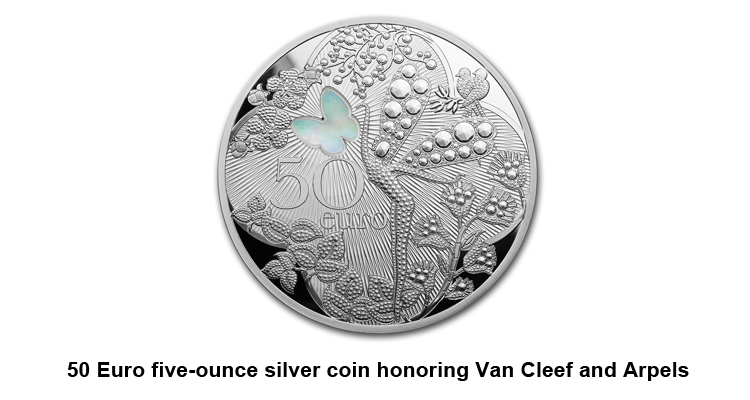 50 Euro five-ounce silver coin honoring Van Cleef and Arpels